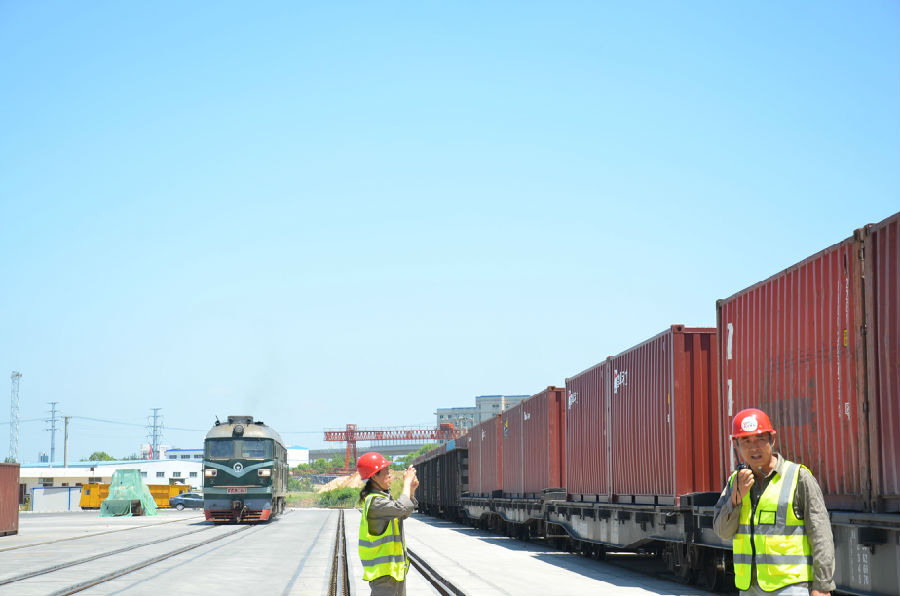 阳逻港区铁水联运场站,发展、建设何其神速,一年多以前,还是一片荒地,杂陈于阳逻核心港区。今年3月份,杨斌和方青兰领着一队人开始学习全新的操作业务。从陌生到熟悉,他们一天天改变、一步步提升,迅速融入新丝路公司,与铁水联运场站共成长。“7月11日,第14个“中国航海日”暨“世界海事日”之际,铁水联运成功突破8000TEU”,杨斌、方青兰和他们的团队艰辛努力付出得到了回报。